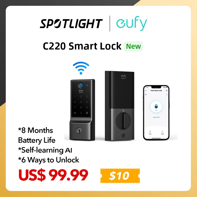 eufy Security Smart Lock C220 Fingerprint Keyless Entry Door Lock Built-in Wi-Fi App Remote Control Front Door Smart Lock - Купить с бесплатной доставкой