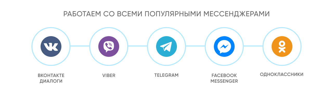 Существует 4 популярных мессенджера, где базируются боты: Telegram, Вконтакте, Facebook, Viber.
