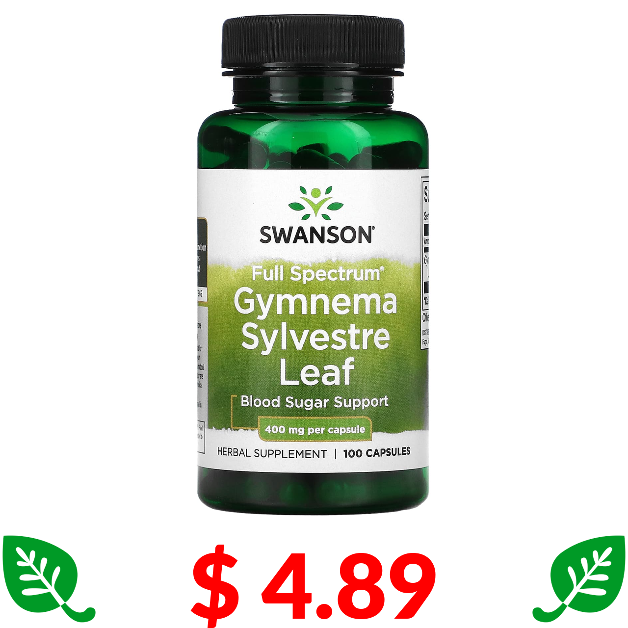 $ 4.89 Swanson, Full Spectrum, листя джимнеми, 400 мг, 100 капсул