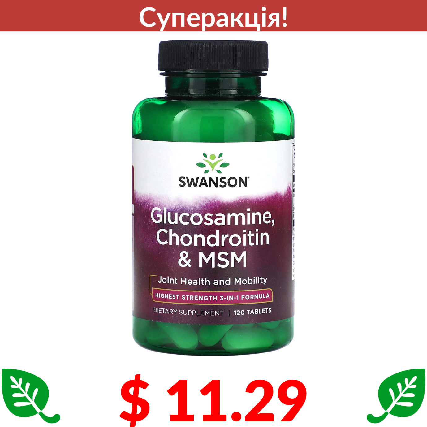 $ 11.29 Swanson, глюкозамін, хондроїтин і МСМ, 120 таблеток