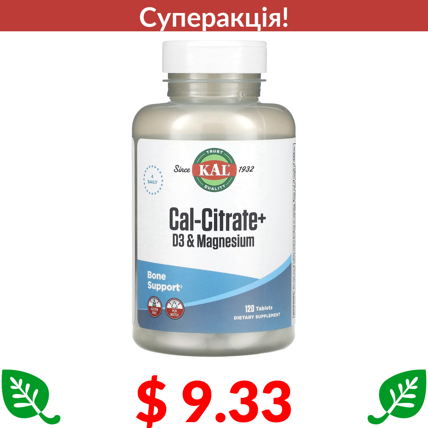 $ 9.33 KAL, Cal-Citrate+ D3 & Magnesium, 120 Tablets