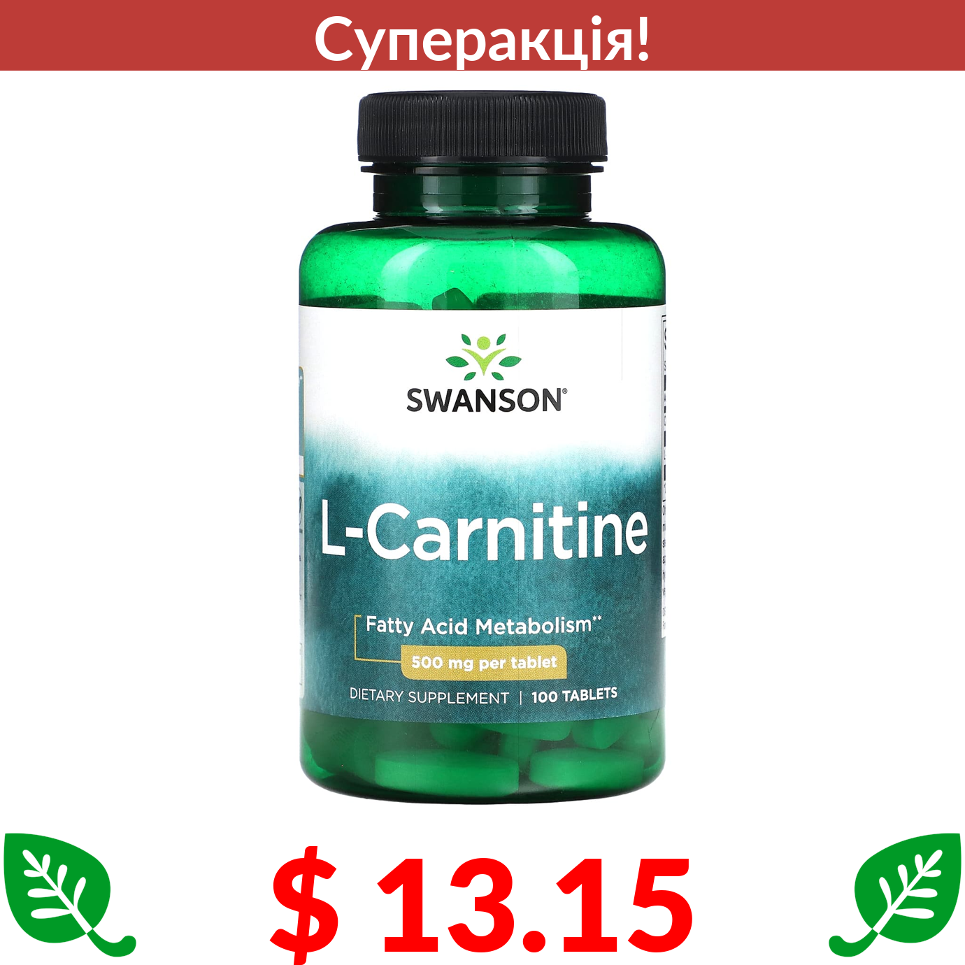 $ 13.15 Swanson, L-карнітин, 500 мг, 100 таблеток