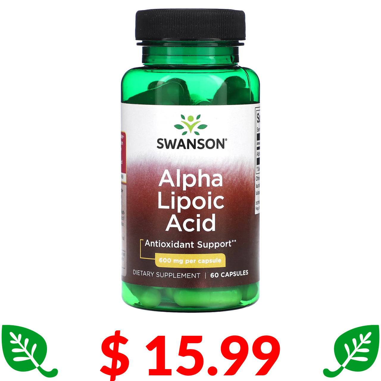 $ 15.99 Swanson, альфа-ліпоєва кислота, 600 мг, 60 капсул