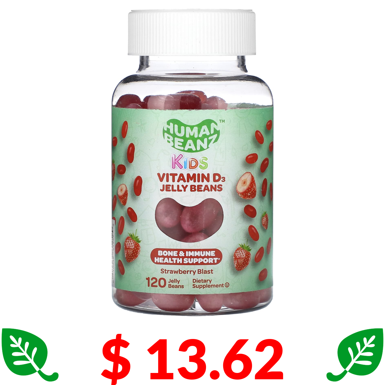 $ 13.62 Human Beanz, Kids, Vitamin D3 Jelly Beans, Strawberry Blast , 120 Jelly Beans