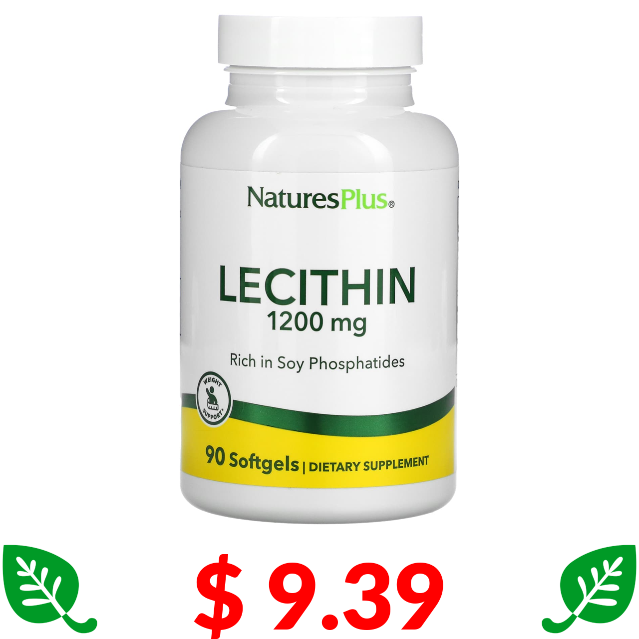 $ 9.39 Nature's Plus, лецитин, 1200 мг, 90 капсул