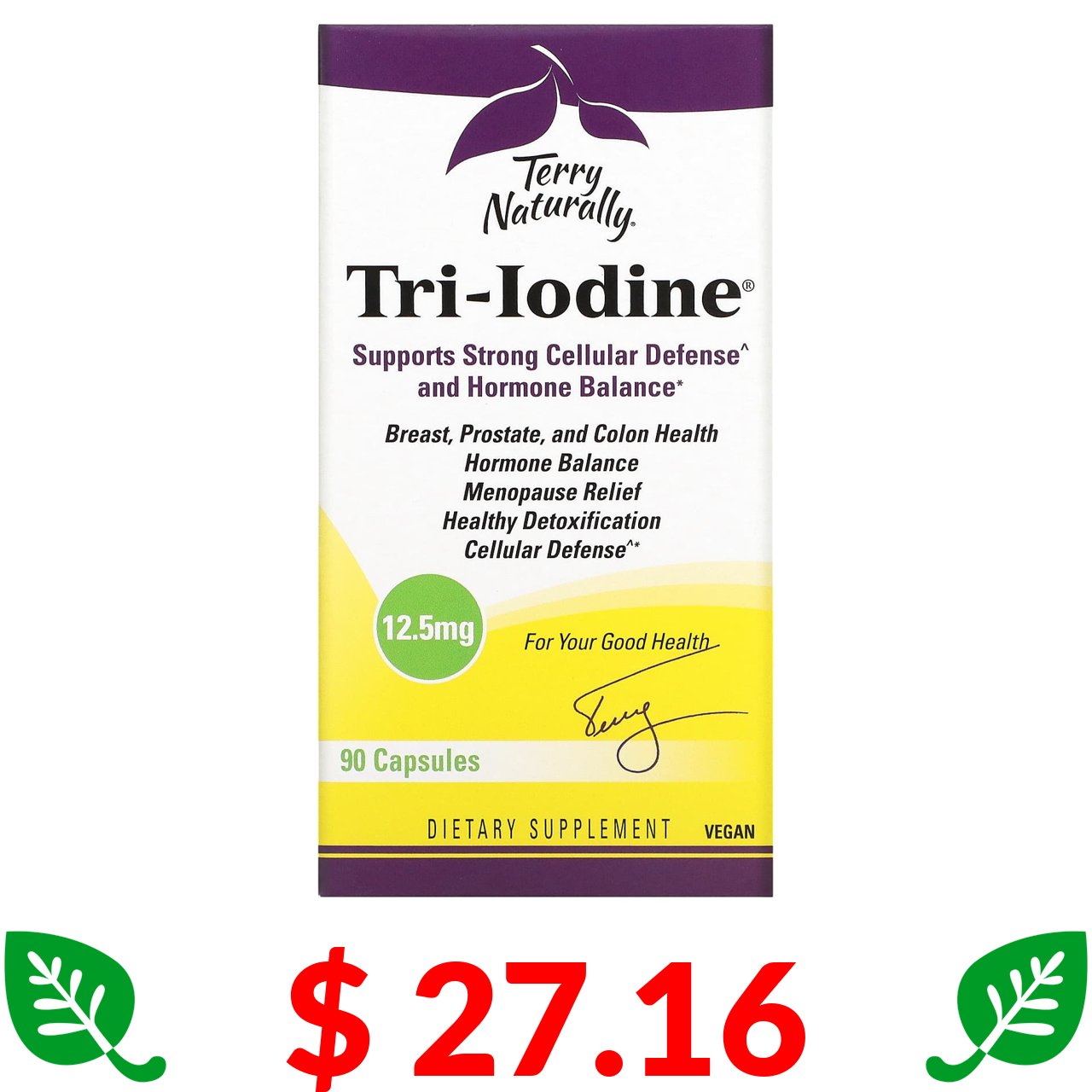 $ 27.16 Terry Naturally, Трийод, 12,5 мг, 90 капсул