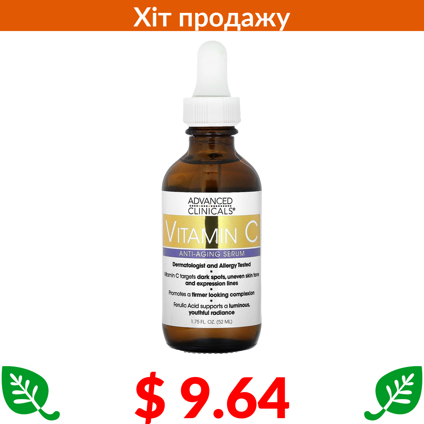 $ 9.64 Advanced Clinicals, вітамін С, антивікова сироватка, 52 мл (1,75 рідк. унції)
