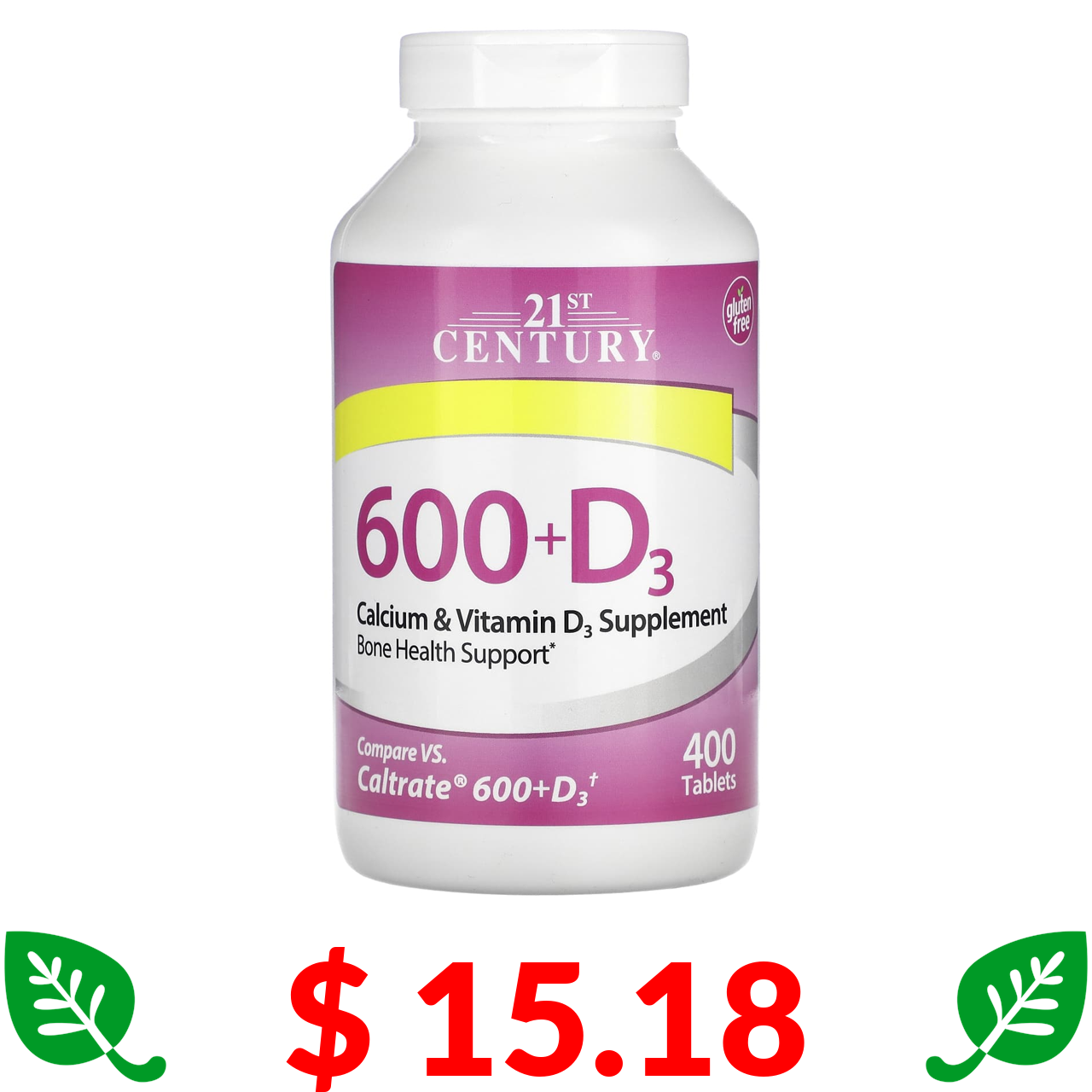 $ 15.18 21st Century, 600+D3, добавка з кальцієм і вітаміном D3, 400 таблеток