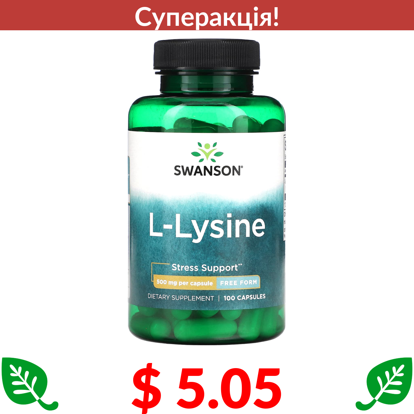 $ 5.05 Swanson, L-Lysine, 500 mg, 100 Capsules