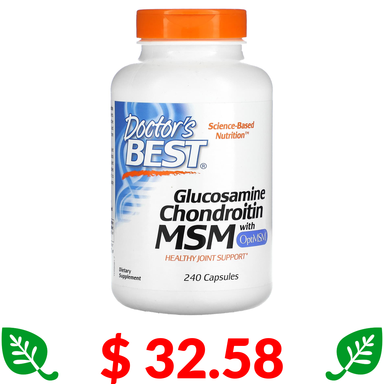 $ 32.58 Doctor's Best, глюкозамін, хондроїтин і МСМ з OptiMSM, 240 рослинних капсул