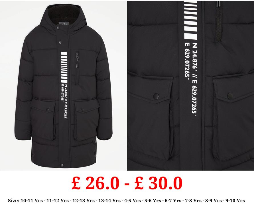 £ 26.0 - £ 30.0 Black Longline Padded Pocket Coat