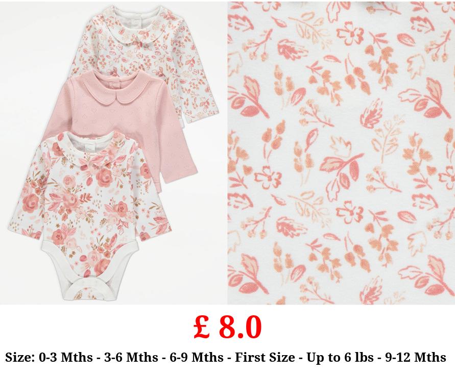 £ 8.0 Pink Collared Floral Bodysuits 3 Pack