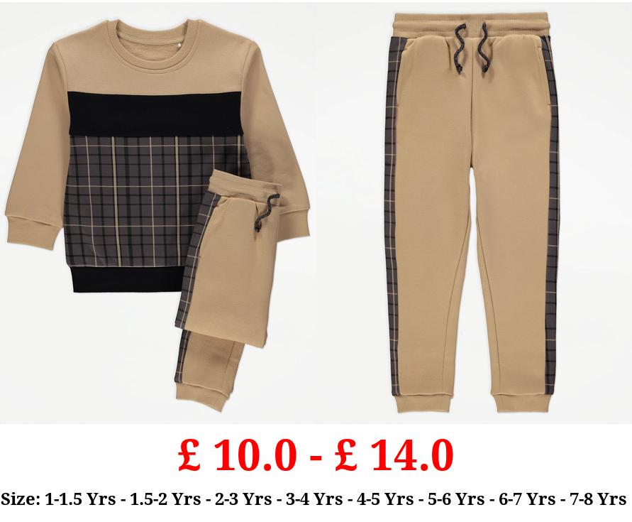 £ 10.0 - £ 14.0 Tan Checked Trim Sweatshirt and Joggers Outfit