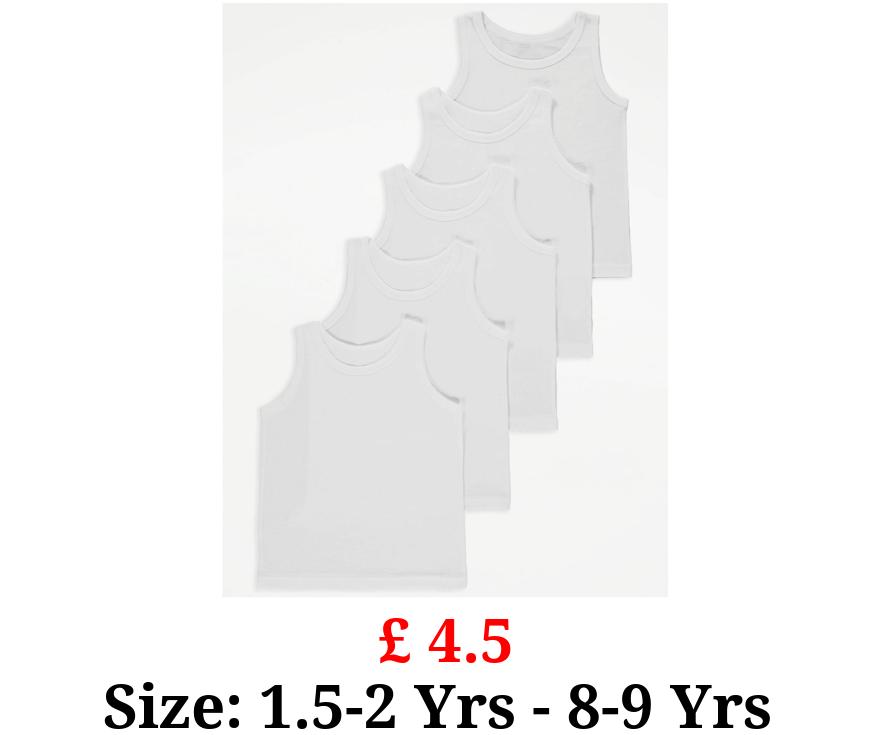 £ 4.5 Plain White Vests 5 Pack