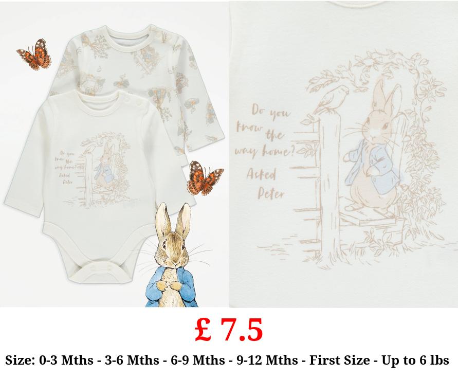 £ 7.5 Peter Rabbit Long Sleeve Bodysuits 2 Pack