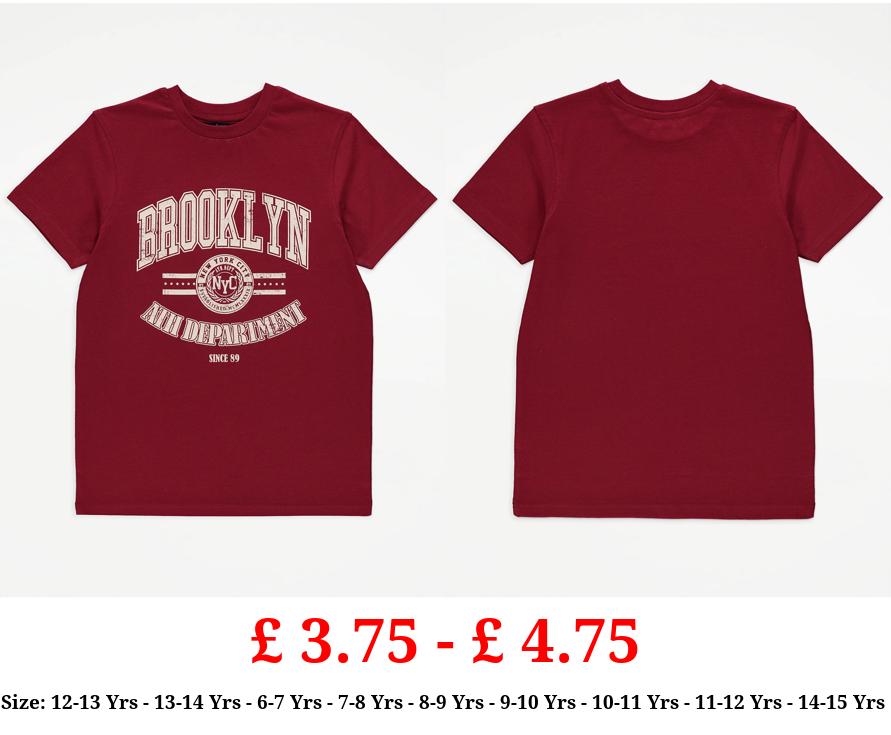 £ 3.75 - £ 4.75 Red Brooklyn Slogan T-Shirt