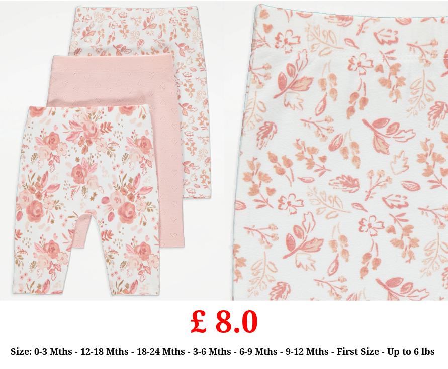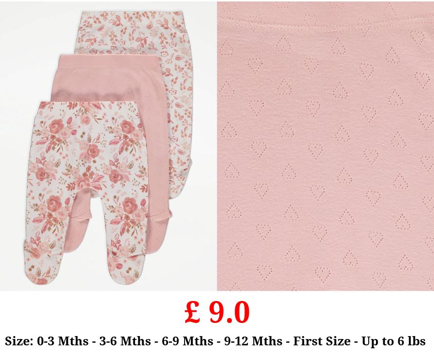 £ 9.0 Pink Floral Footed Leggings 3 Pack