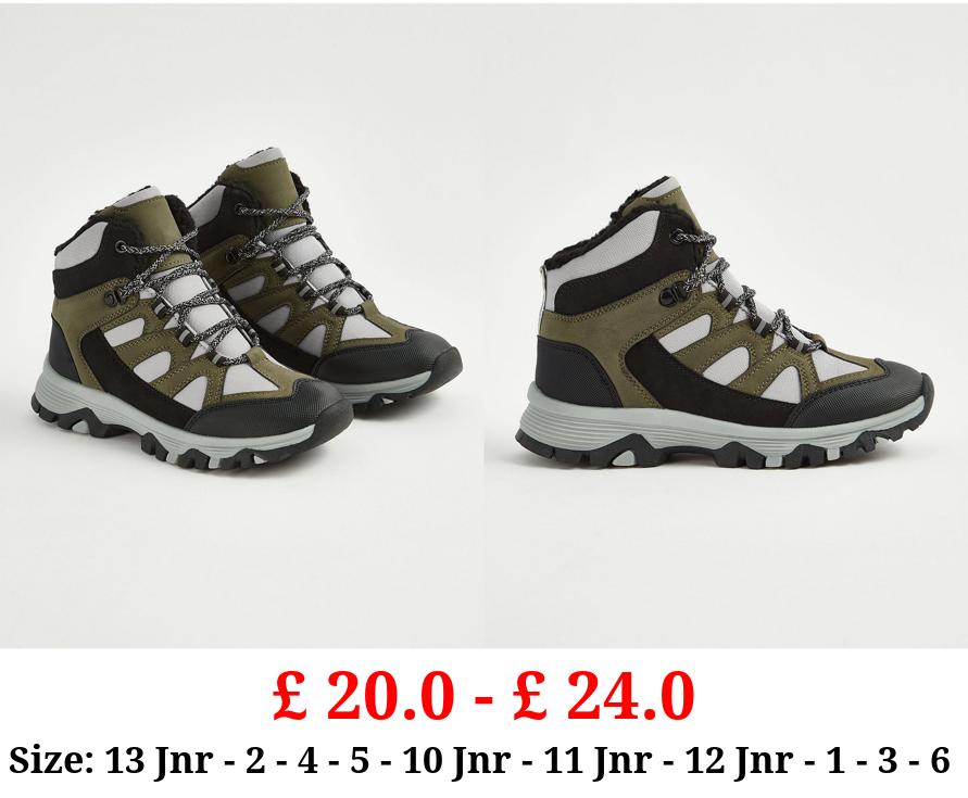 £ 20.0 - £ 24.0 Khaki Panelled Fleece Lined Mountain Boots