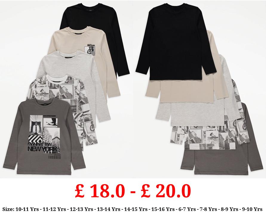 £ 18.0 - £ 20.0 Grey New York Graphic Long Sleeve Tops 5 Pack