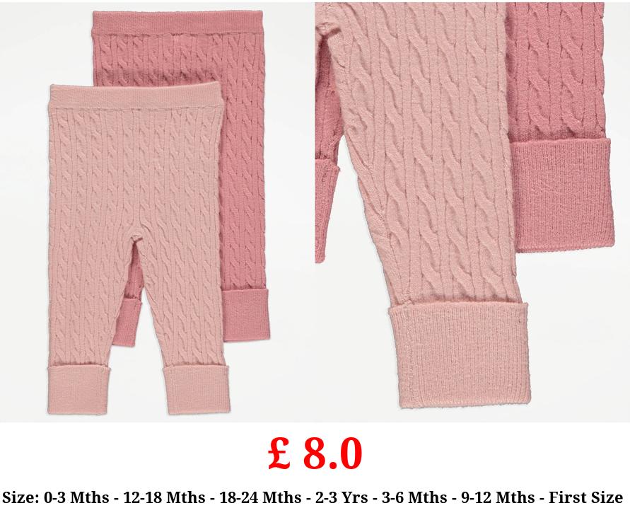 £ 8.0 Pink Cable Knit Leggings 2 Pack