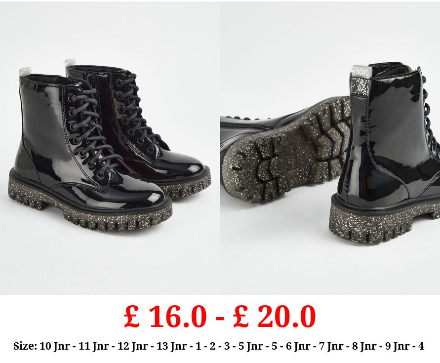 £ 16.0 - £ 20.0 Black Patent Glitter Sole Biker Boots
