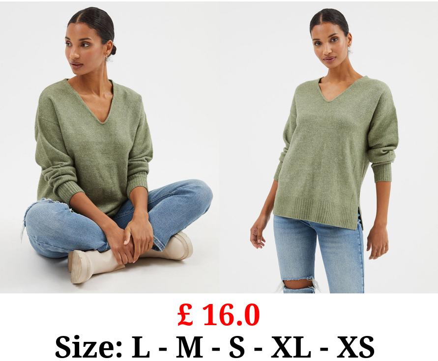 £ 16.0 Green Slouchy V Neck Jumper
