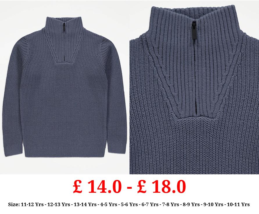£ 14.0 - £ 18.0 Blue Zip Neck Knitted Jumper