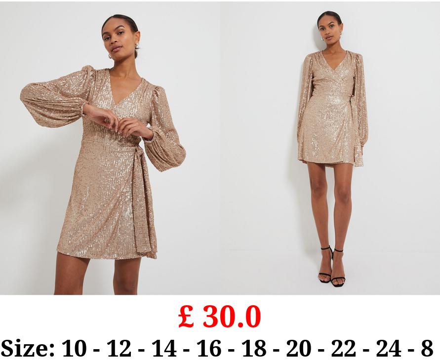£ 30.0 Gold Sequin Wrap Front Mini Dress