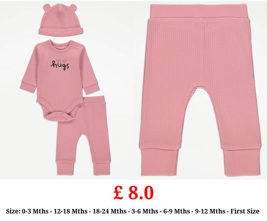 £ 8.0 Pink Ribbed Hugs Bodysuit Leggings and Hat Outfit