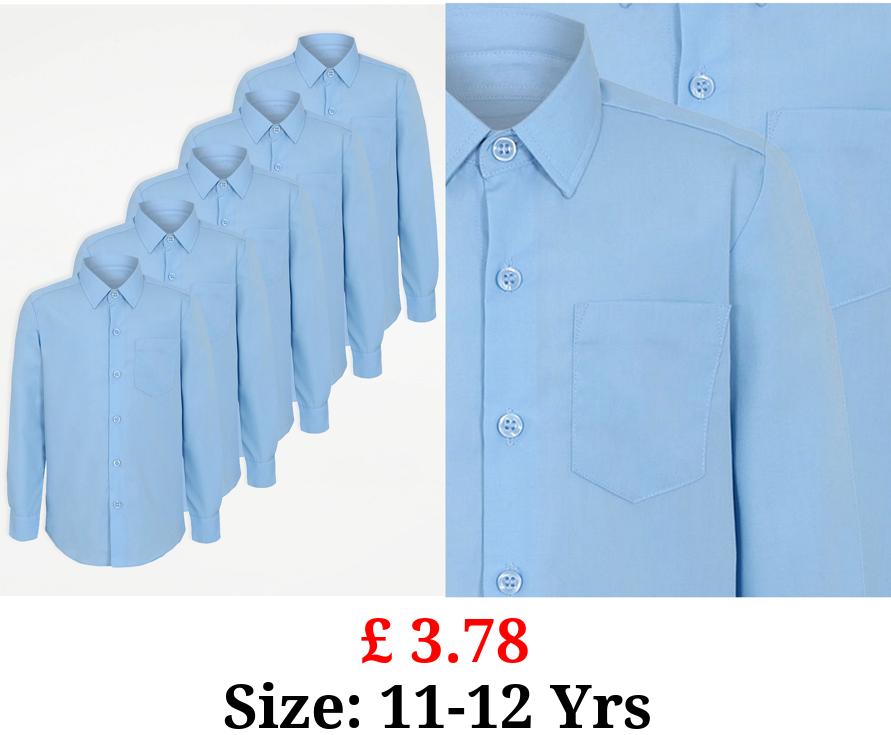 £ 3.78 Boys Light Blue Long Sleeve School Shirt 5 Pack