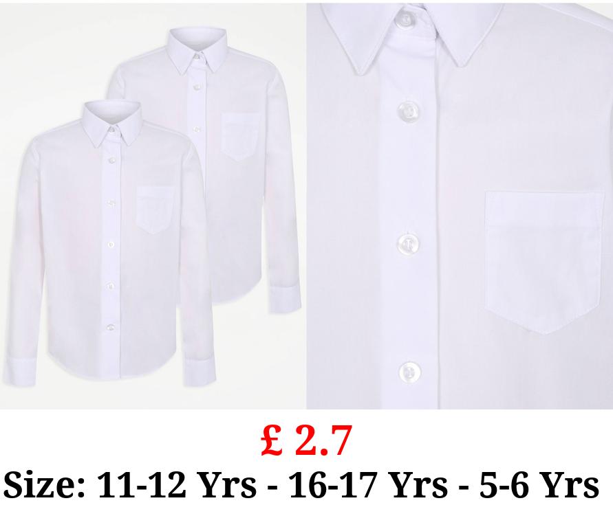 £ 2.7 Girls White Slim Fit Long Sleeve School Shirt 2 Pack