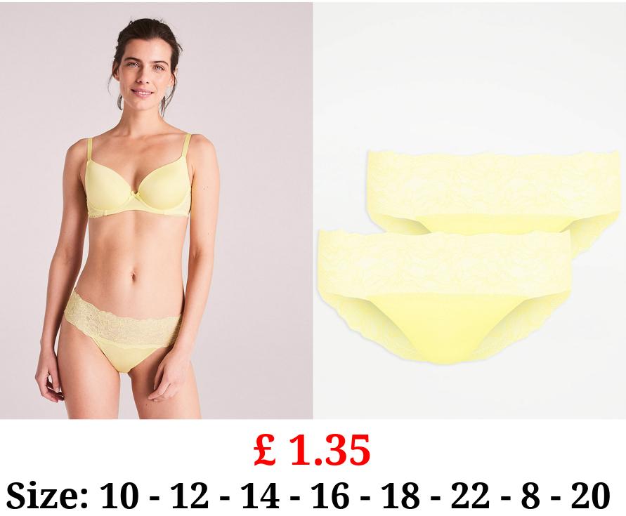 £ 1.35 Yellow Lace Trim Bandeau Briefs 2 Pack