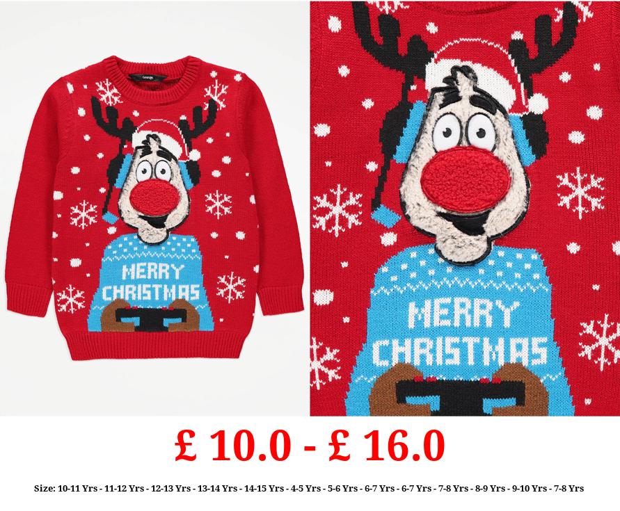£ 10.0 - £ 16.0 Red Furry Rudolph Matching Kids Christmas Jumper