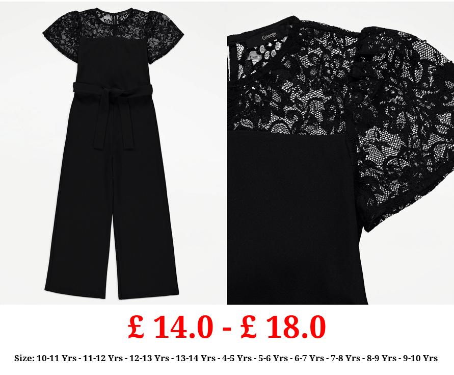 £ 14.0 - £ 18.0 Black Lace Belted Jumpsuit