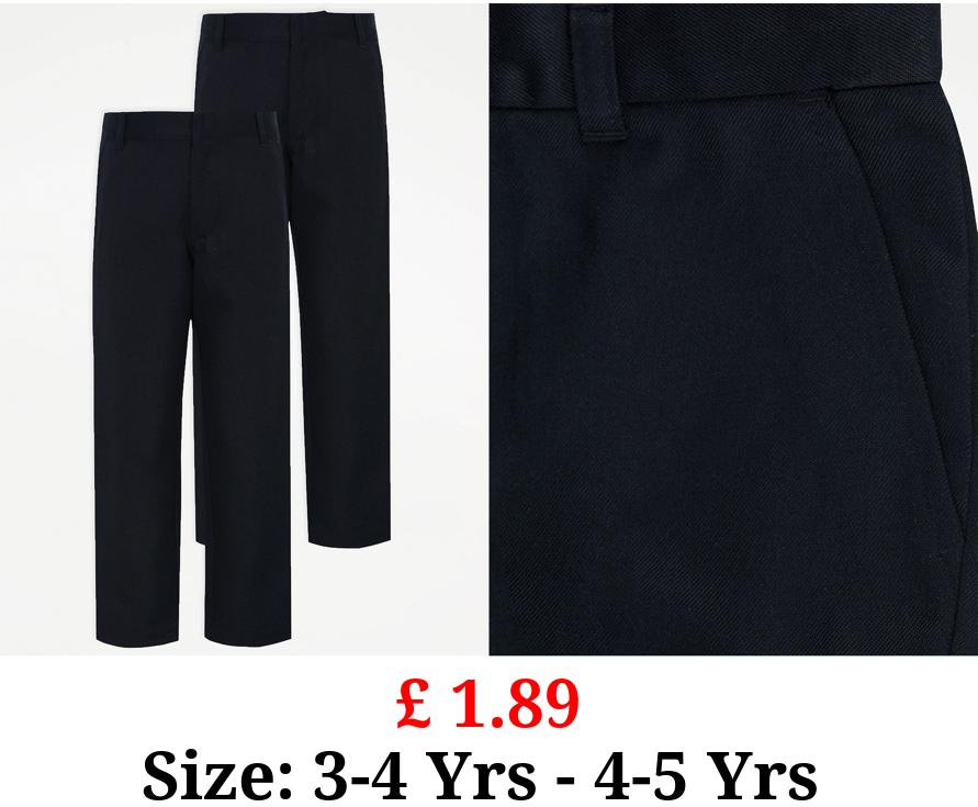 £ 1.89 Boys Navy Longer Length Slim Leg School Trouser 2 Pack