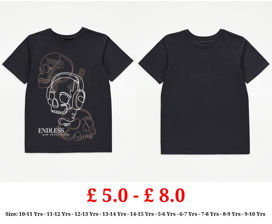 £ 5.0 - £ 8.0 Black Skull Graphic T-Shirt
