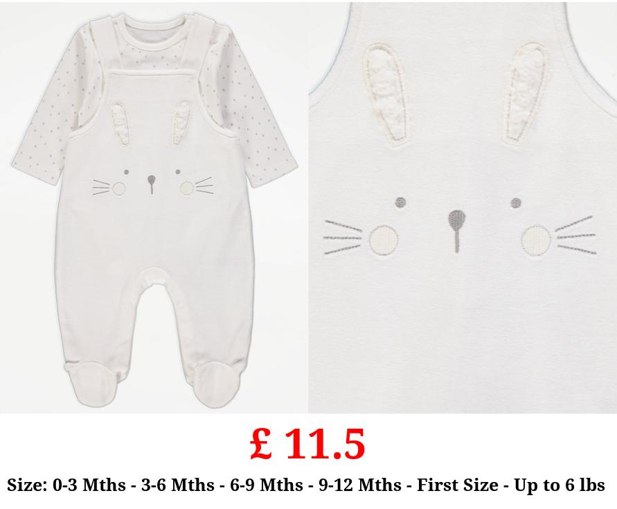 £ 11.5 White Bunny Dungarees and Spotty Bodysuit Outfit