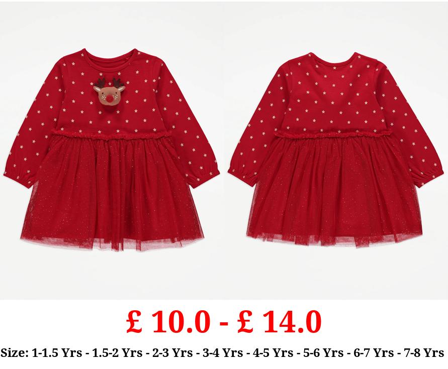 £ 10.0 - £ 14.0 Red Reindeer Star Print Tutu Dress