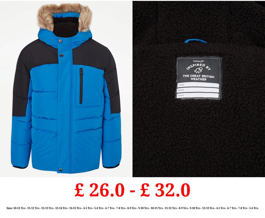 £ 26.0 - £ 32.0 Blue Faux Fur Trim Padded Coat