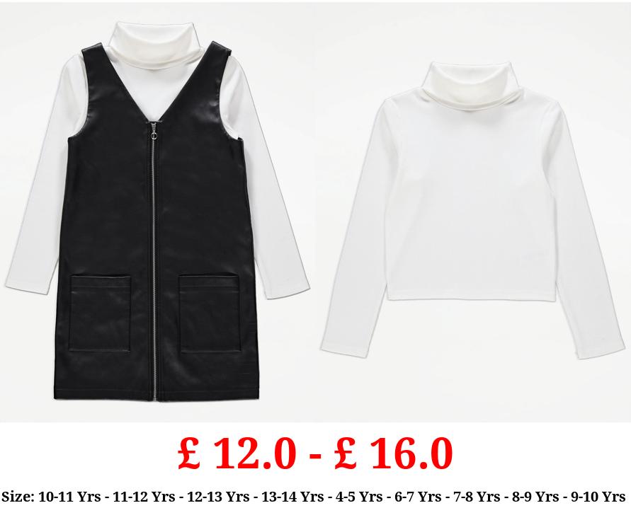 £ 12.0 - £ 16.0 Black Leather Look Pinafore and Roll Neck Top Outfit