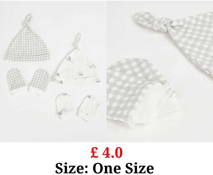 £ 4.0 White Stork Hat and Mittens Set 2 Pack