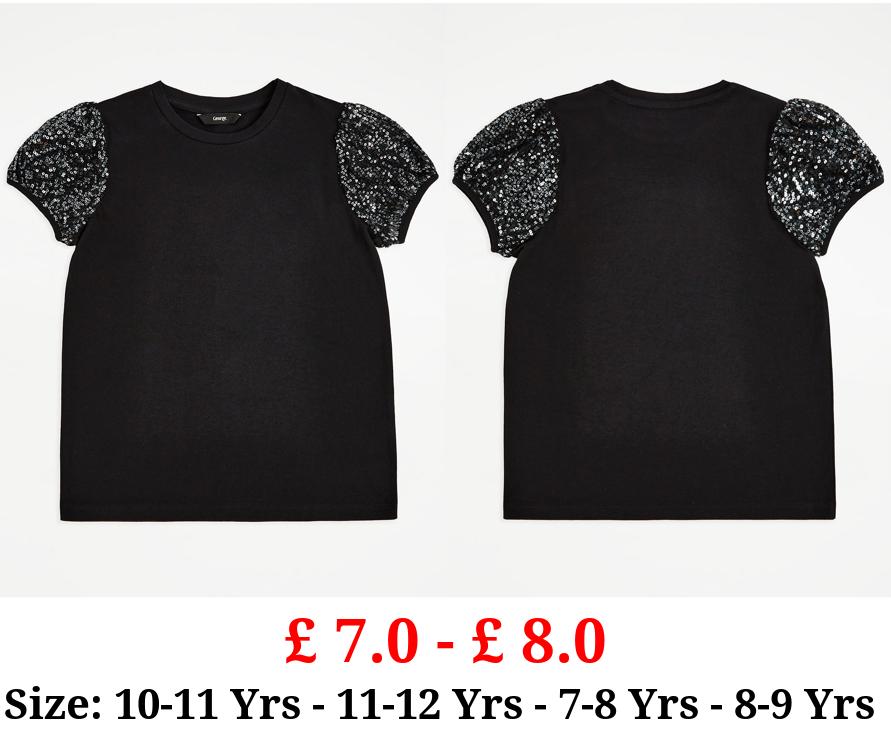 £ 7.0 - £ 8.0 Black Sequin Short Sleeve Top