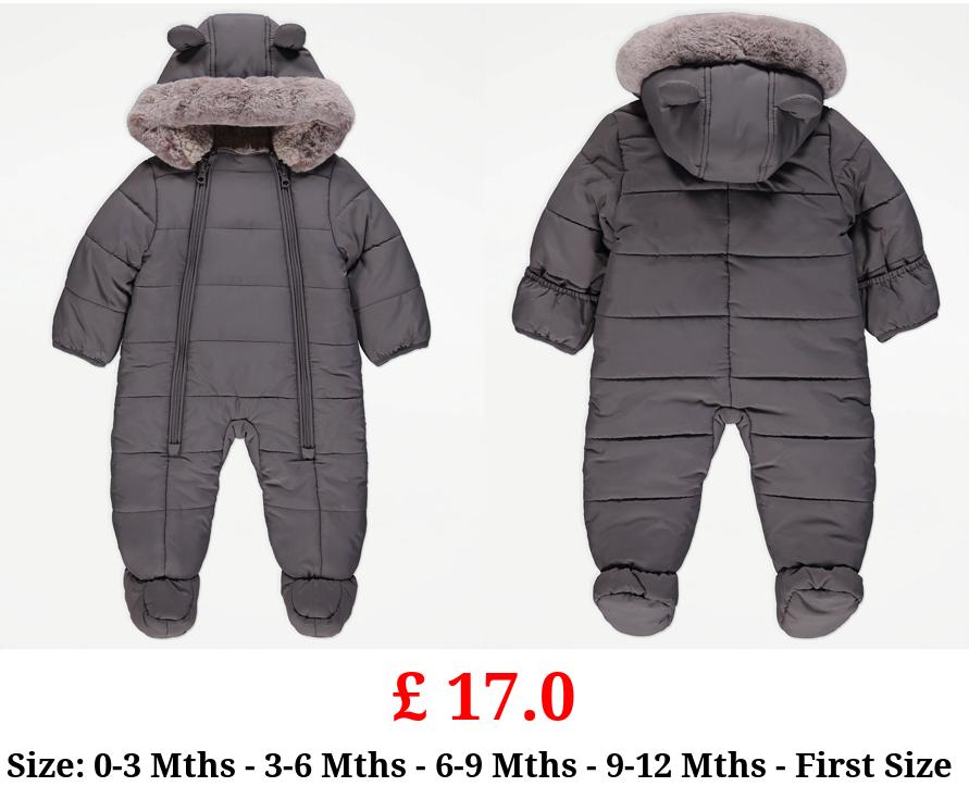 £ 17.0 Grey Padded Faux Fur Trim Snowsuit