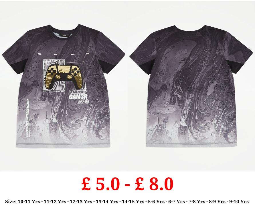 £ 5.0 - £ 8.0 Grey Gaming Sequin T-Shirt