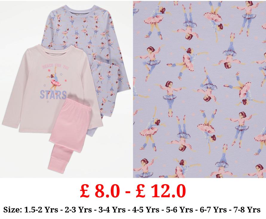 £ 8.0 - £ 12.0 Ballerina Print Long Sleeve Pyjamas 2 Pack