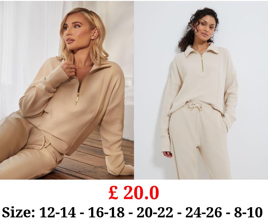 £ 20.0 Billie Faiers Neutral Ribbed Quarter Zip Sweatshirt