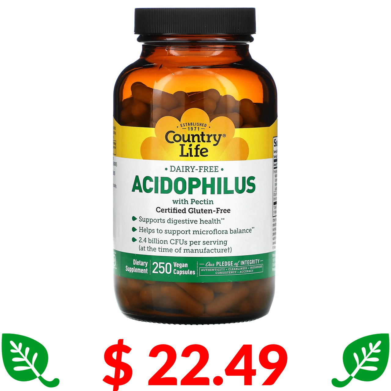 $ 22.49 Country Life, Acidophilus з пектином, 250 веганських капсул