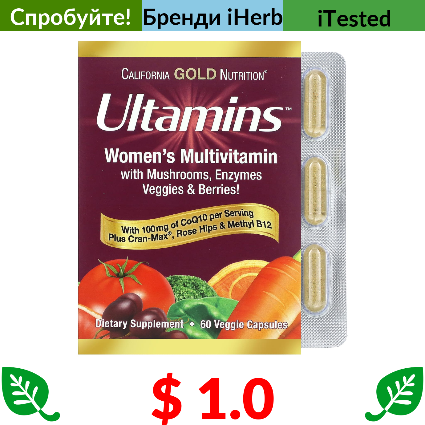 $ 2.78 California Gold Nutrition, Gold C, вітамін С, 1000 мг, 60 вегетаріанських капсул