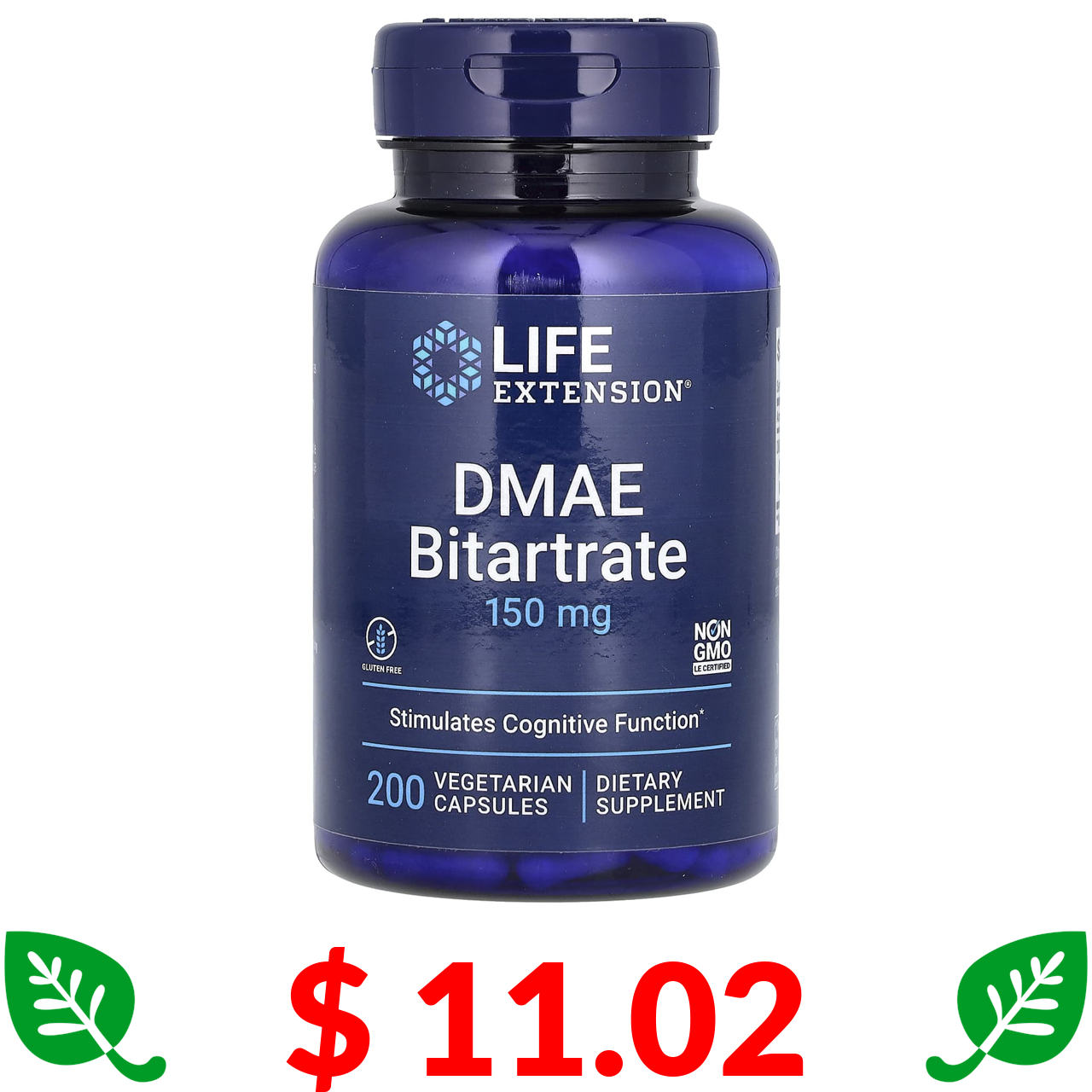 $ 11.02 Life Extension, бітартрат ДМАЕ, 150 мг, 200 вегетаріанських капсул