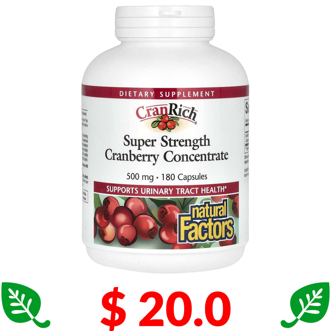 $ 20.0 Natural Factors, CranRich, Super Strength, концентрат журавлини, 500 мг, 180 капсул